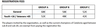5€ for players with disabilities recognized by the FCd'E