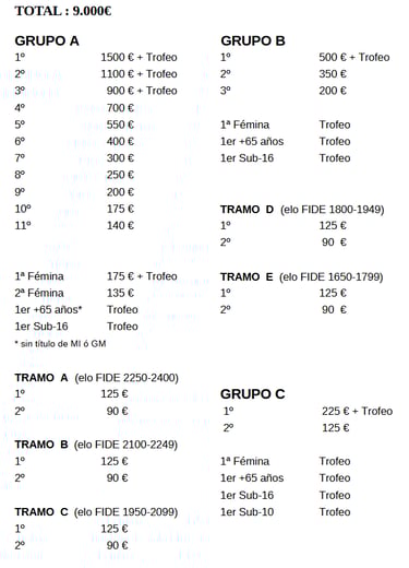 Todos los premios monetarios están sujetos a la retención de IRPF correspondiente, según la legislación española vigente :