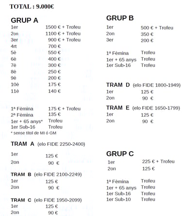 Els premis monetaris no es repartiran entre els empatats a punts.